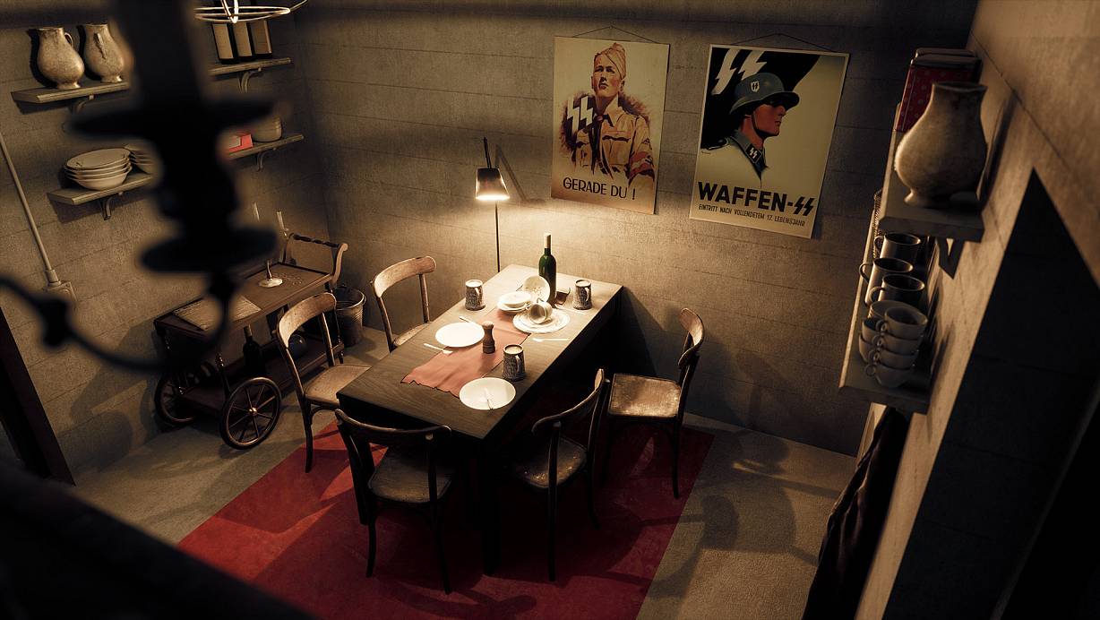 Ein Esszimmer im Führerbunker, nachgebaut in der Virtuellen Realität. | © NordVR