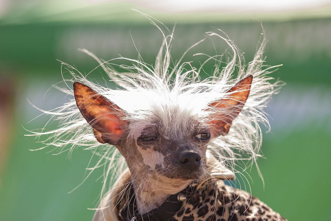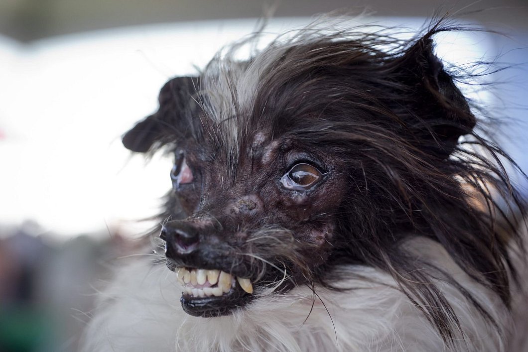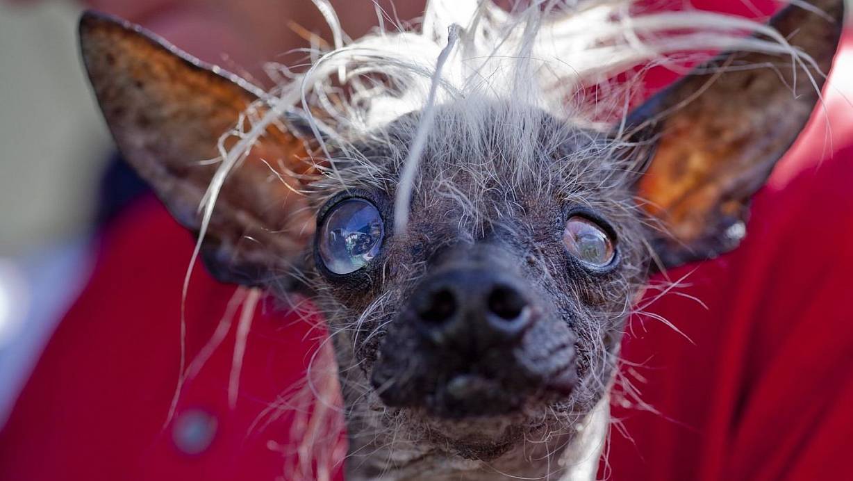 2012: Der Chinesische Schopfhund Mugly kommt aus England und ist wirklich eine ...Augenweide mit seinem fast nackten Körper, seiner faltig-braunen mit Leberflecken übersäten Haut und nur einer Augenbrauensträhne im sonst haarlosen Gesicht.