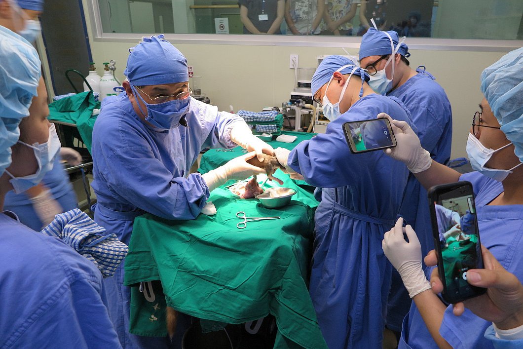 Offen wird die Entfernung des Zellkerns aus einer Eizelle unter dem Mikroskop bis zur Geburt vorgeführt. Bei der Operation erklärt Teamleiter Hwang Woo Suk jeden Schritt: So etwa auch, wenn er bei einer großen braunen Mischlingshündin, die betäubt auf dem Rücken auf dem Operationstisch liegt, einen Kaiserschnitt durchführt. „Alles perfekt", sagt Hwang zufrieden, nachdem das Neugeborene die ersten Töne von sich gibt. Die Erfolgsrate, das eine „Leihmutter" schwanger wird, liegt laut Sooam bei etwa 40 Prozent.
