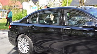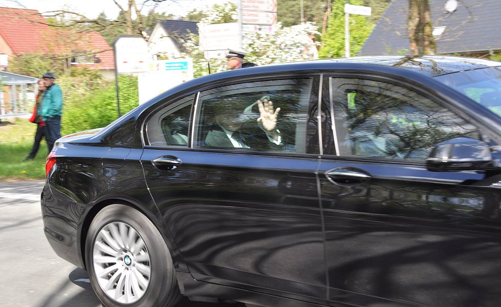 Kurzer Blick: Joachim Gauck winkt aus der Staatskarosse.