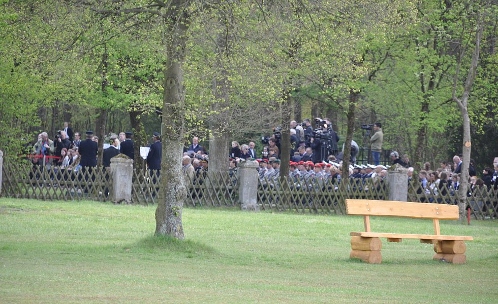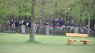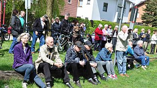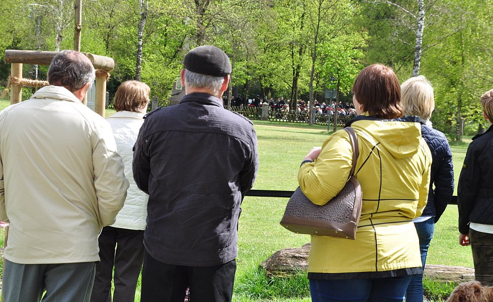 Aus der Ferne: Über den Spielplatz hinweg können die Besucher ein wenig von der Veranstaltung auf dem Ehrenfriedhof mitbekommen.