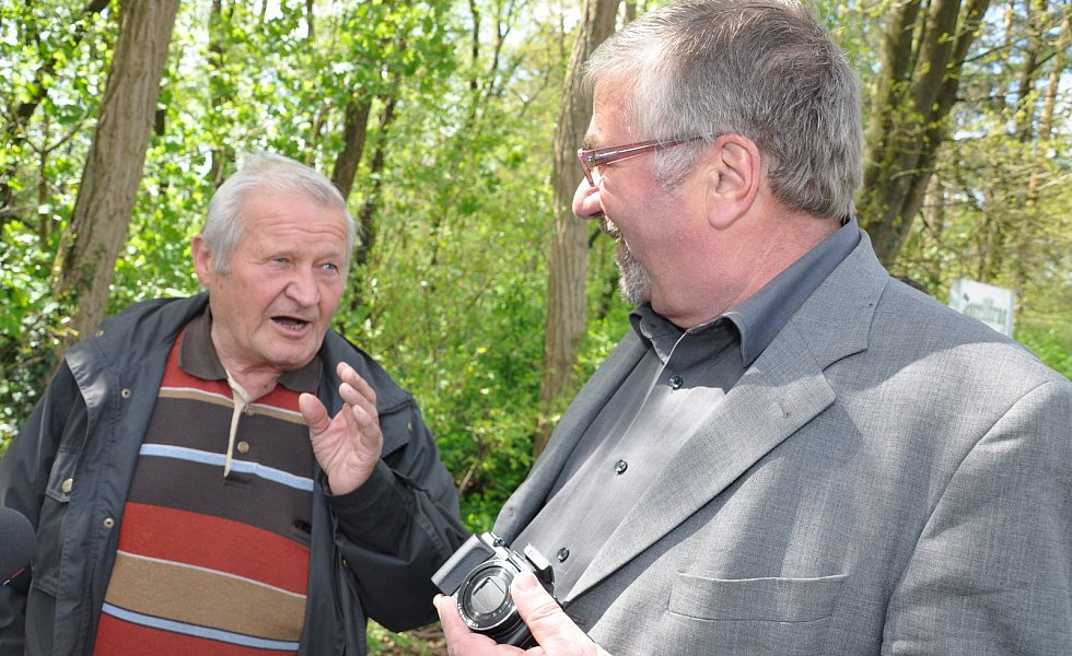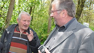 Ist extra gekommen: Karl-Heinz Kronshage, genannt Kalla, ist früher der Bratwurstkönig von Augustdorf gewesen. Hier ist er im Gespräch mit Gerhard Ingenhaag.
