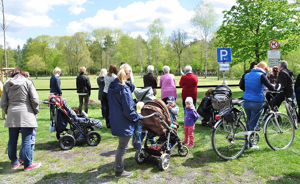 Aus der Ferne: Über den Spielplatz hinweg können die Zaungäste ein wenig von der Veranstaltung mitbekommen.