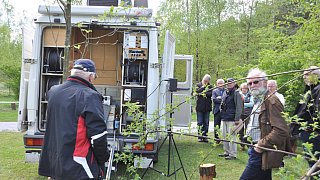 Zuhörer: Neben dem Ü-Wagen des WDR verfolgen einige Besucher die Rede des Bundespräsidenten.