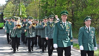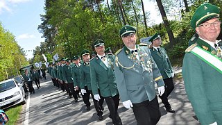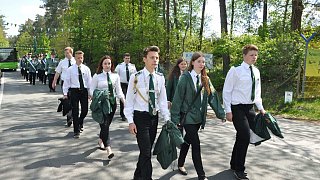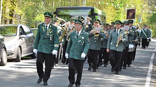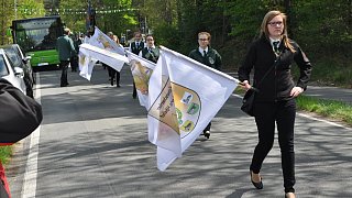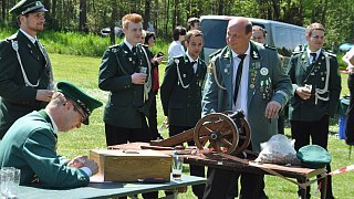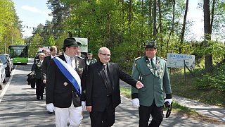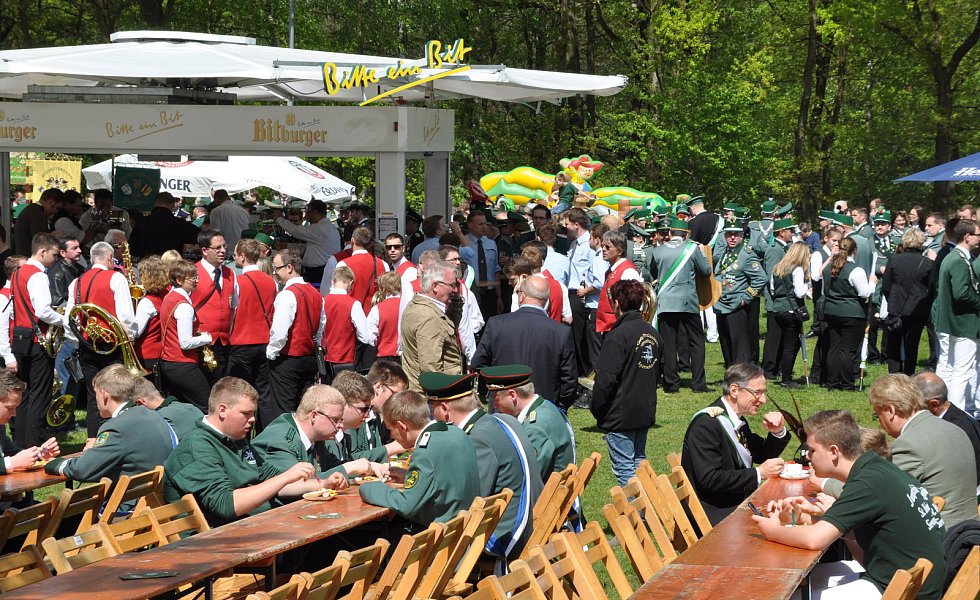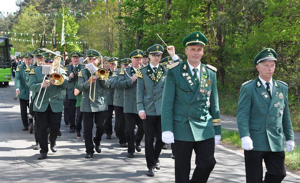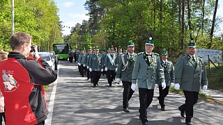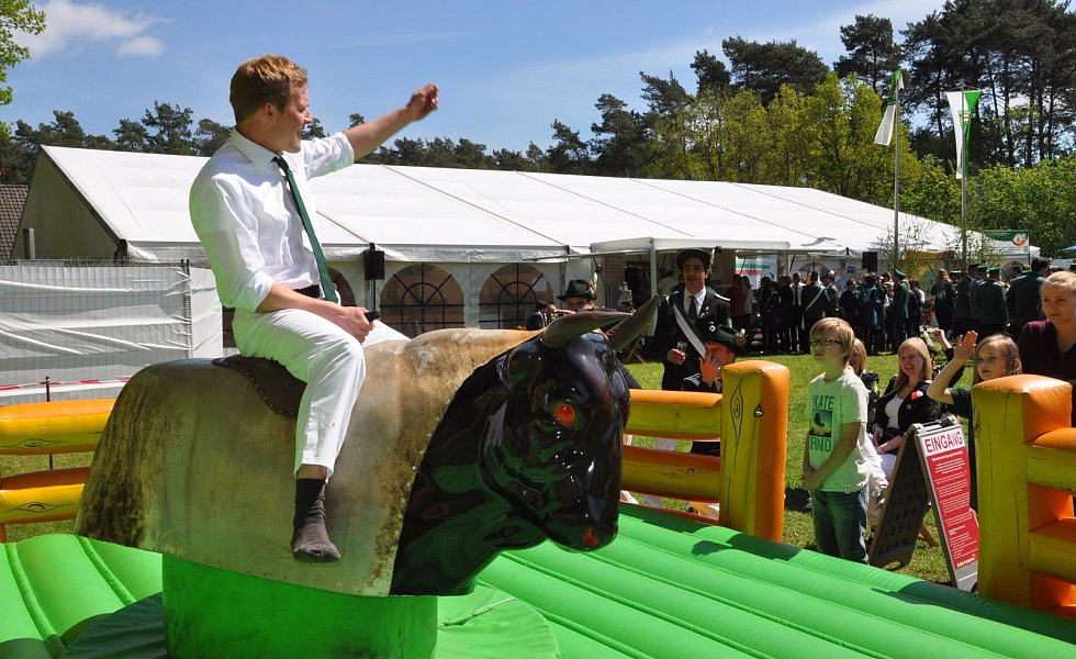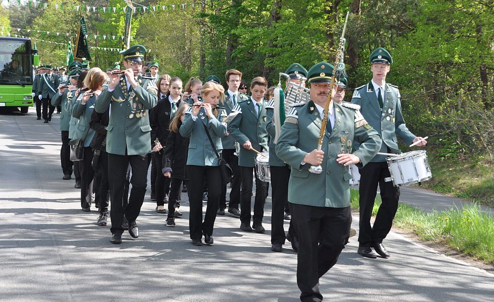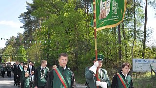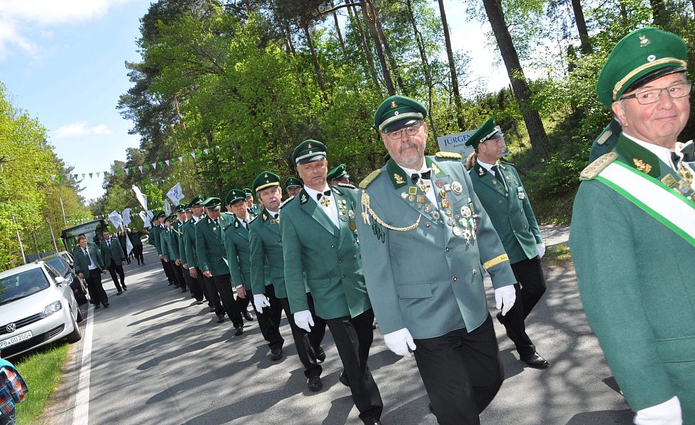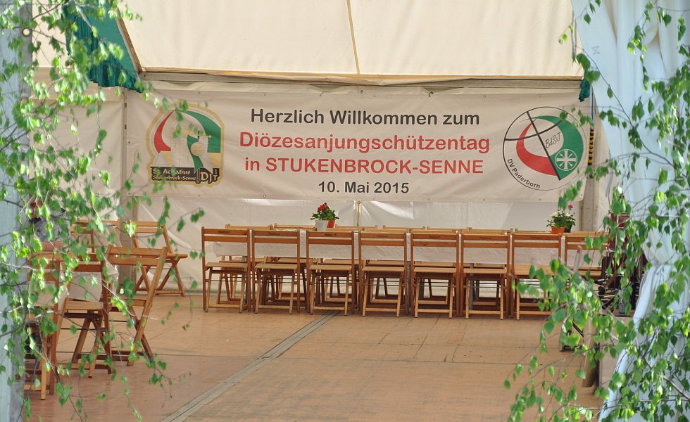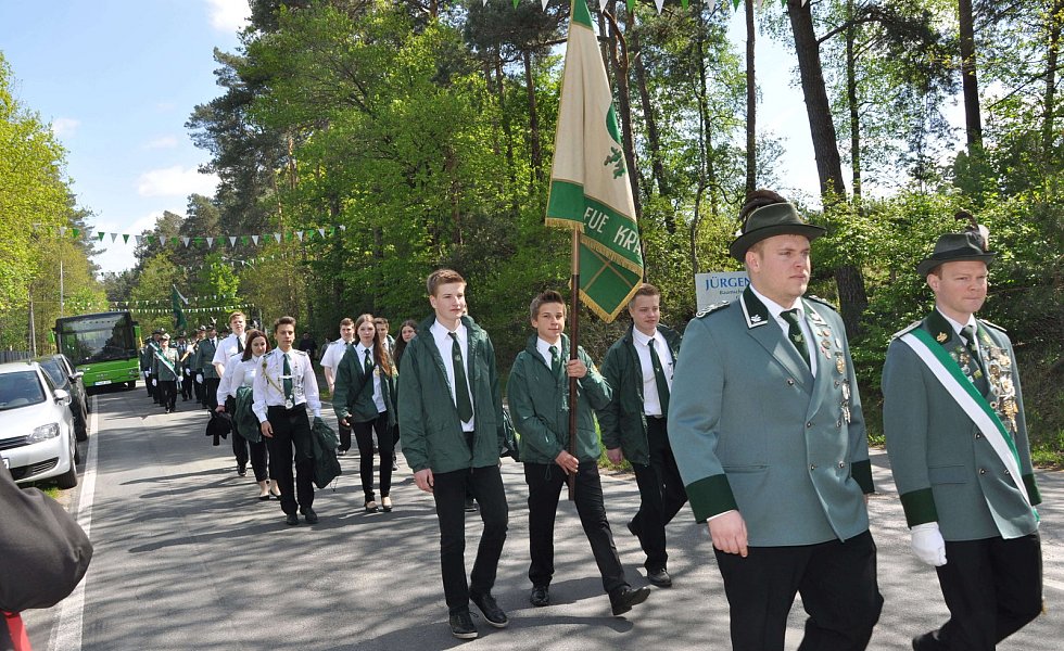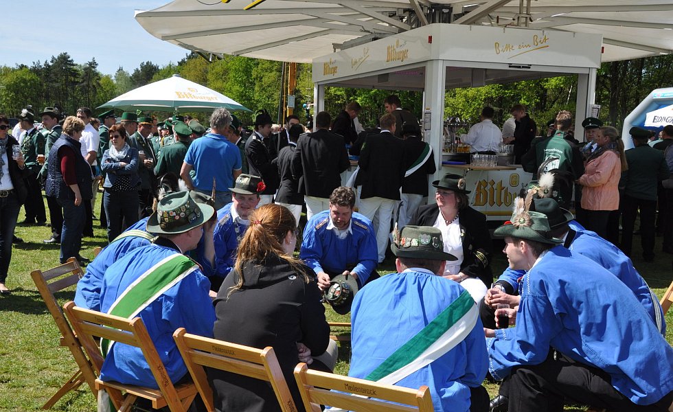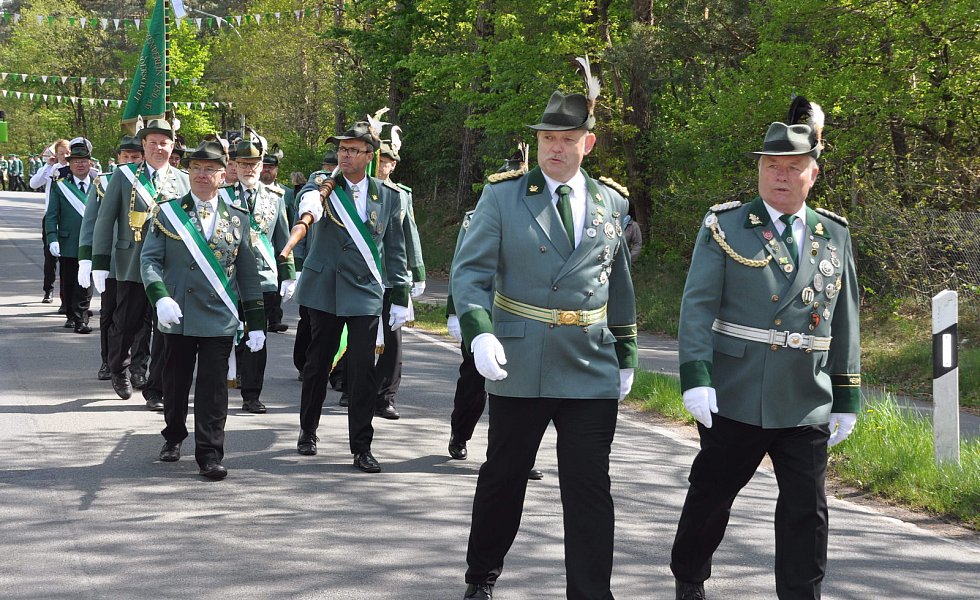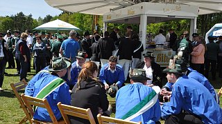 Die Majestäten: Marvin Weigel von der Bruderschaft St. Georg Dreiländereck aus Verl-Sürenheide ist der neue Diözesanjungschützenprinz. Eileen Schäfergockel von der Bruderschaft St. Hubertus Elsen ist die neuen Diözesanschülerprinzessin. Hendrik Hillebrand (vorne l. neben dem Prinz) ehrt die beiden. Hinter ihnen stehen die Platzierten.