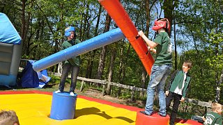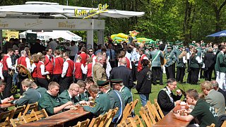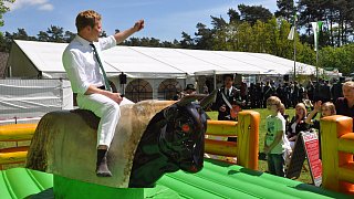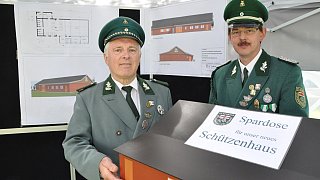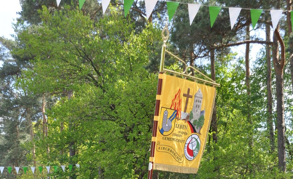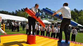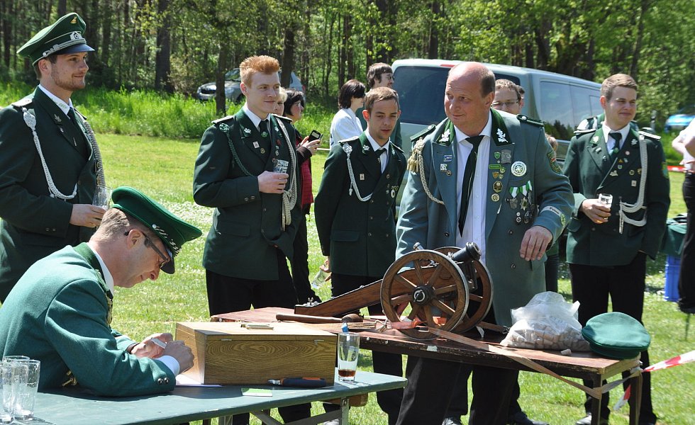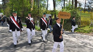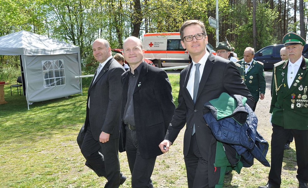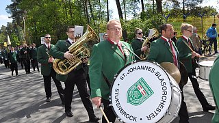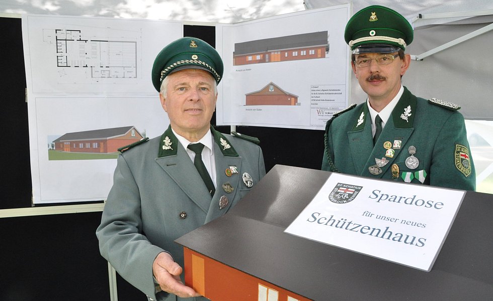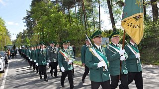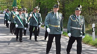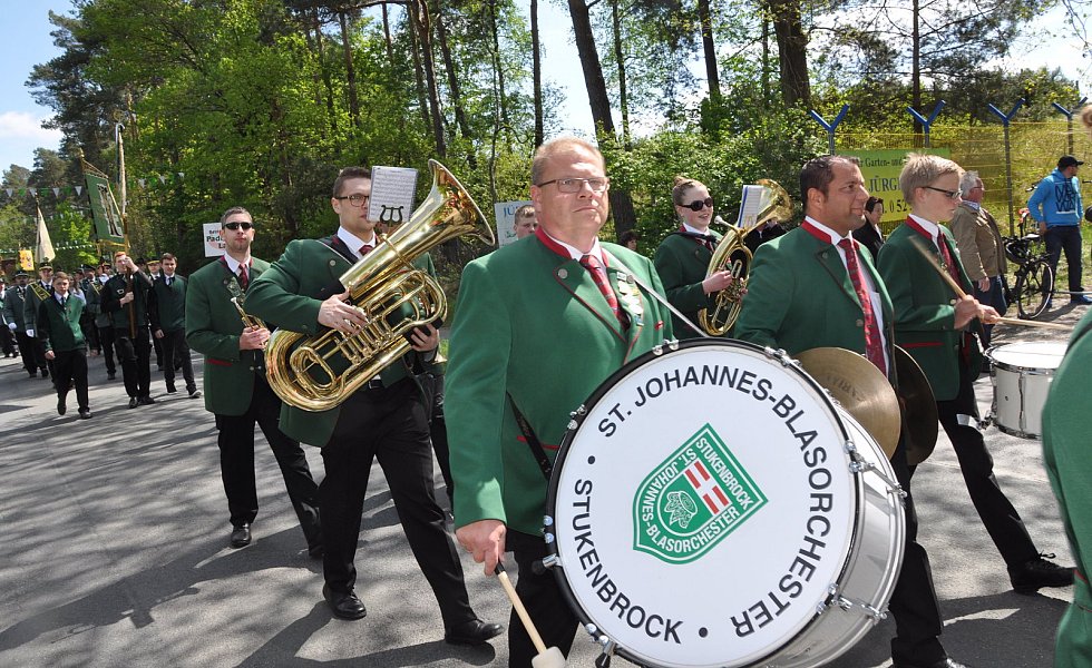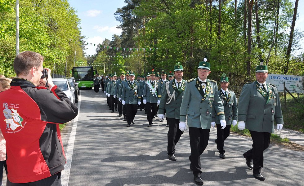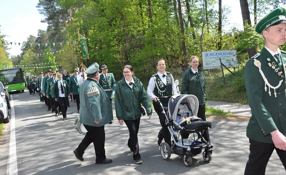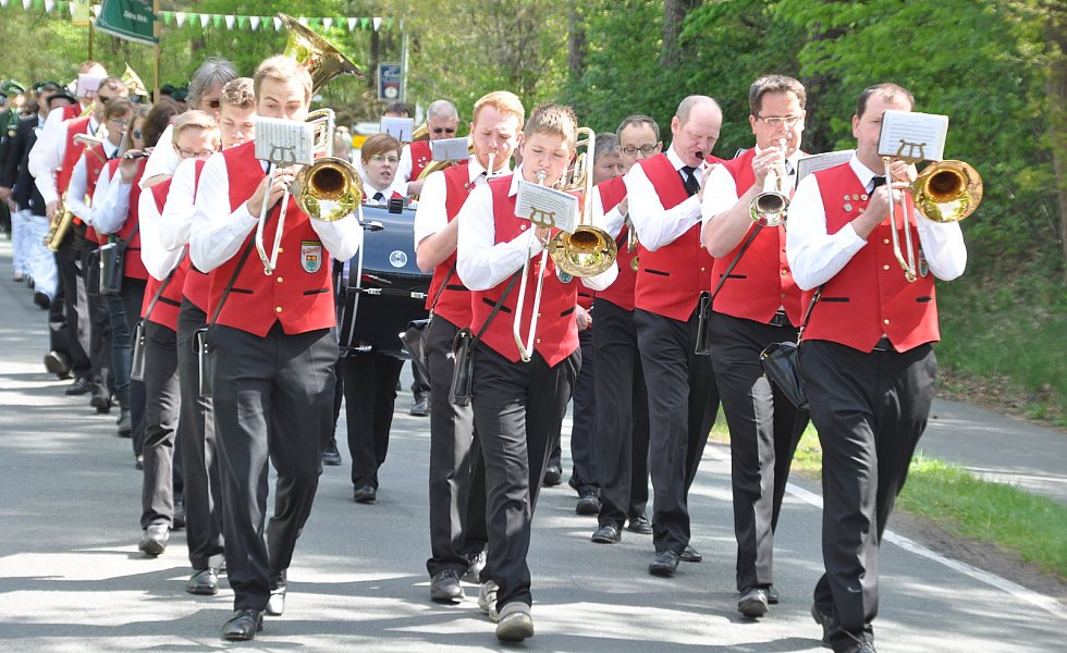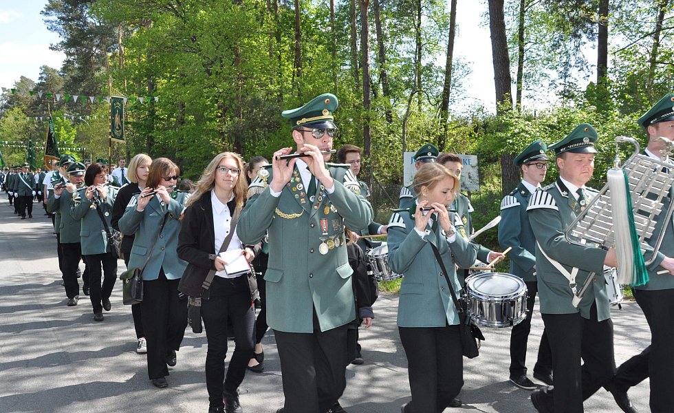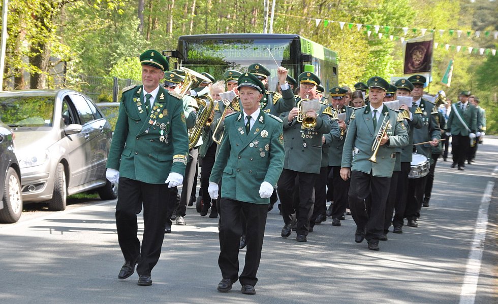 Die Majestäten: Marvin Weigel von der Bruderschaft St. Georg Dreiländereck aus Verl-Sürenheide ist der neue Diözesanjungschützenprinz. Eileen Schäfergockel von der Bruderschaft St. Hubertus Elsen ist die neuen Diözesanschülerprinzessin. Hendrik Hillebrand (vorne l. neben dem Prinz) ehrt die beiden. Hinter ihnen stehen die Platzierten.