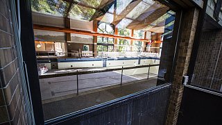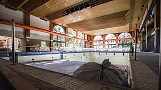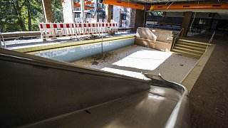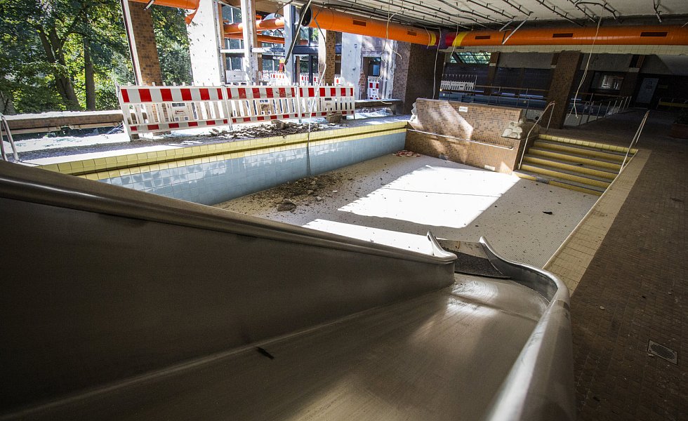 55 Jahre stand es am seinem Platz - jetzt nagen die Abrissbagger an den Mauern und bald ist das Hallenbad an der Herzebrocker Straße Geschichte.