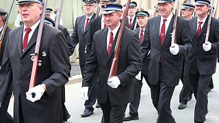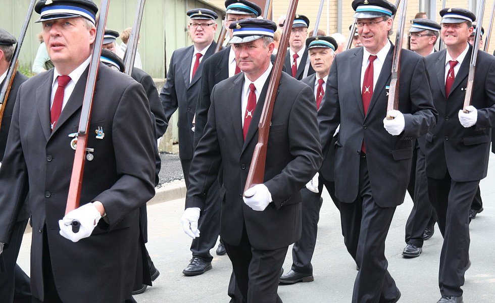 Halten dem Heimatschutzverein die Treue: (von links) Heinrich Winter, Adjutant, Dr. Lothar Dierkes, Robert Lange, 2. Vorsitzender, Otto Lenz, Werner Müller, Josef Jostes, Fritz Richter, Franz Köring, Peter Götte, Ernst Flotho, Wendelin Winter, Alfons Watermeier senior, Klaus Winter, Oberst.