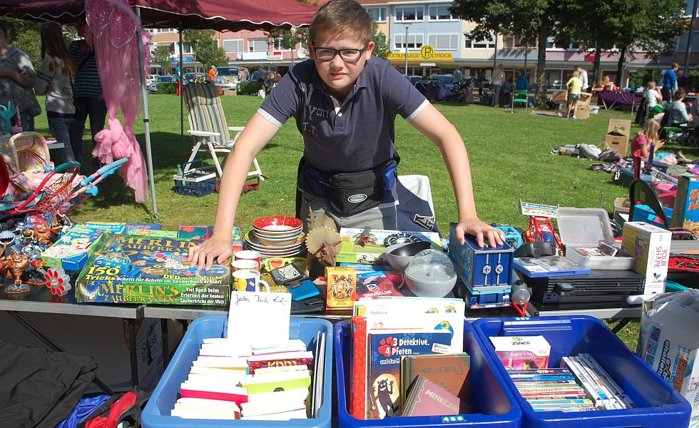 Bei sommerlichen Temperaturen bummelten viele große und kleine Espelkamper über den Kinderflohmarkt.