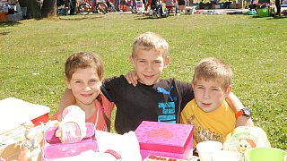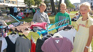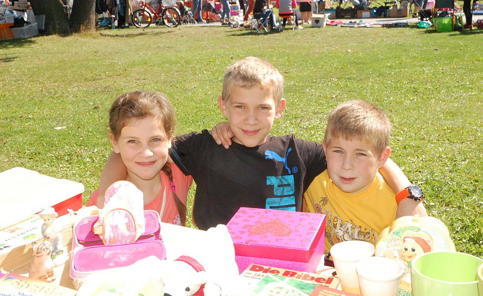 Handeln macht Spaß: Tabea, Jonathan und Manuel haben Spaß auf dem Kinderflohmarkt.