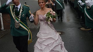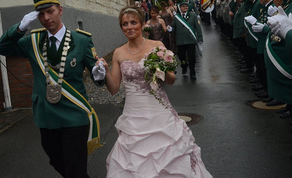 Vorbeimarsch: Das Königspaar Ramon und Marion Strache nimmt die Parade ab. FOTO: DIETMAR GRÖBING