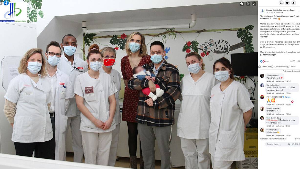 Bourges. Die kleine "Avah" ist am 19. Februar mit einem Gewicht von 3,6 Kilogramm und einer Größe von 50 Zentimetern zur Welt gekommen - nicht ungewöhnlich. Besonders ist die natürliche Geburt des kleinen Mädchens dennoch, wie die Klinik "Centre Hospitalier Jacques Coeur", die sich im französischen Bourges befindet, auf Facebook darlegt. Denn ihre Mutter und ihr Vater sind Transgender.