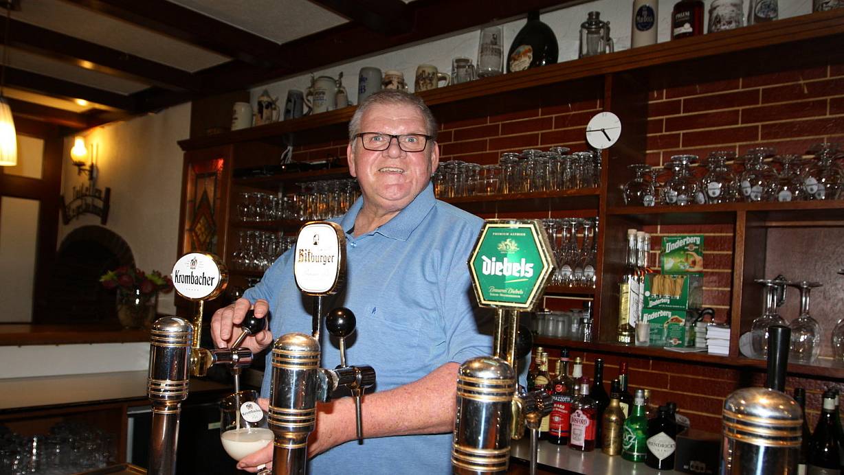 An einem seiner Arbeitsplätze: Burkhard Bernemann, Kreisvorsitzender der Dehoga, am Tresen in seiner Gaststätte „Zum Hölzchen“ in Wewer, wo er auch Koch ist. Foto: Uwe Müller | © Uwe Müller