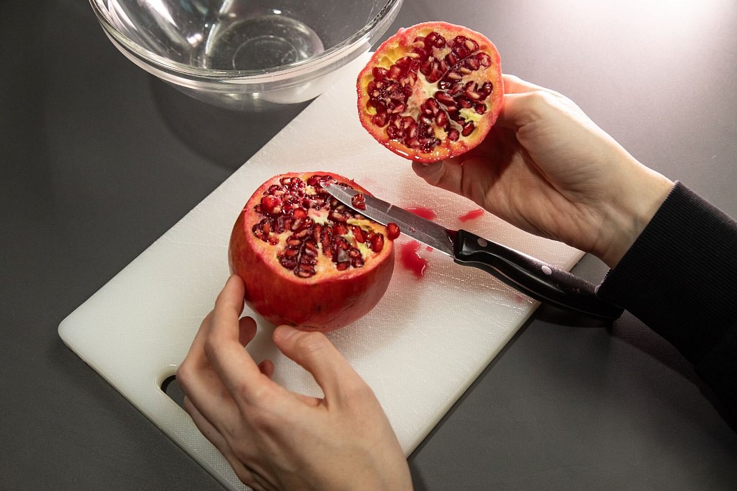 Egal ob für Salate, Desserts oder Cocktails: Die Kerne von Granatäpfeln lassen sich vielseitig verwenden. Doch erst einmal muss man sie aus der Frucht lösen - und das möglichst ohne Kleckern. Doch wie geht das?