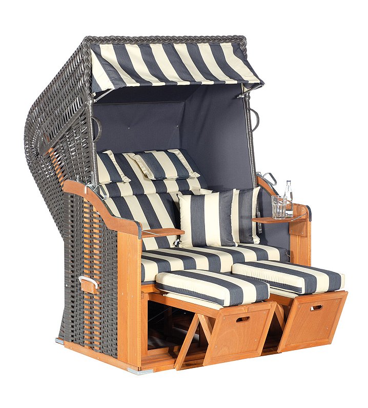 Mit der Verbindung aus wetterbeständigem Holz, PVC-Kunststoffgeflecht und hochwertigen Beschlägen genießen Sie den Komfort des Zweisitzers über viele Jahre hinweg. Durch die elegante Kissenausstattung können Sie den Strandkorb direkt nach der Lieferung nutzen und Ihre Freizeit mit Snacks, Getränken und einem guten Buch genießen. Damit Ihr Strandkorb in der kalten Jahreszeit geschützt ist, erhalten Sie eine Premium-Schutzhülle gratis mit dazu.