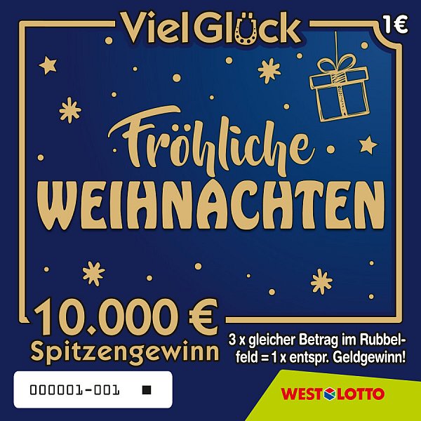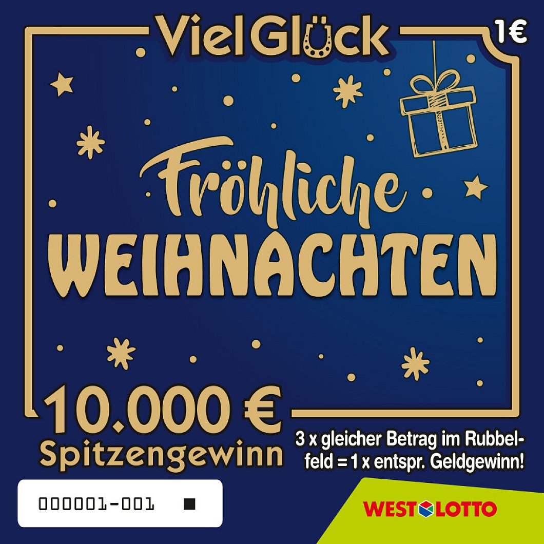 Die Tage werden kürzer, die Lichter heller – und die Vorfreude auf Weihnachten wächst. Bei WestLotto beginnt die festliche Stimmung schon jetzt: Mit den Rubbellosen Viel Glück Weihnachten 2025, X-MAS 7 und Fette 500 Winter 2025 wird die Bescherung eventuell sogar vorgezogen – und die Wartezeit aufs Fest nicht nur schöner, sondern vielleicht auch ein bisschen glücklicher.