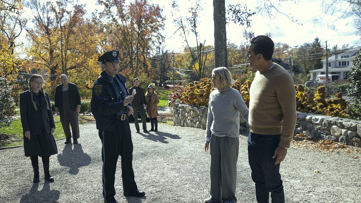 Kleiner Menschenauflauf vor dem Haus von Nora (2.v.r.) und Dean Brannock (r.), gespielt von Naomi Watts und Bobby Cannavale. Die Netflix-Serie beruht auf wahren Begebenheiten. | © ERIC LIEBOWITZ/NETFLIX