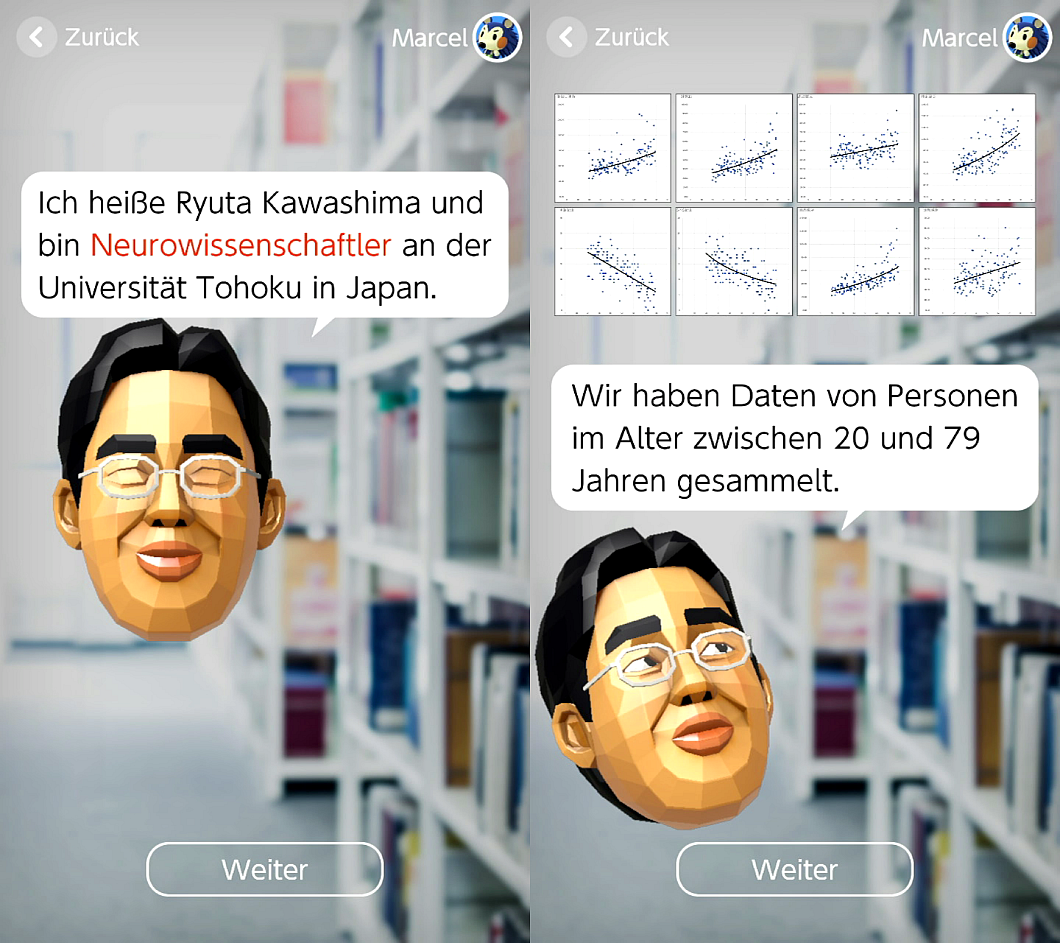 Der Test lässt sich täglich mit unterschiedlichen Übungen wiederholen, wodurch sich die (Miss-)Erfolge des Trainings schnell nachweisen lassen. Uns gefällt der Alterstest, weil wir ein direktes Zeugnis für das tägliche Training bekommen und langfristig angespornt werden, unser Ergebnis zu verbessern. Das beste geistige Alter liegt übrigens laut Dr. Ryuta Kawashimas Annahme bei 20 Jahren.