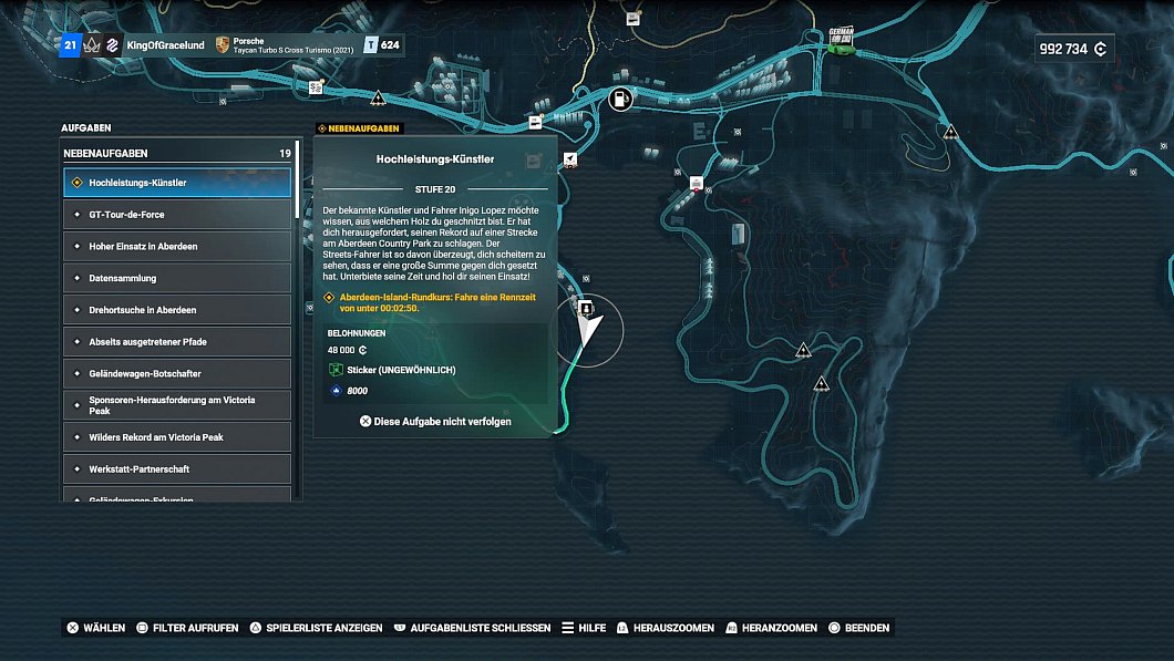 Zunächst die Serverabbrüche: In der Advanced-Access-Zeit, die wir auch voll mitgenommen haben, hatten wir nicht mal die Chance, uns ins Spiel einzuloggen. Das hat sich definitiv verbessert, aber noch immer gibt es plötzliche Abbrüche von Rennen, noch immer gibt es Hinweise, das Spiel könne gerade nicht speichern, noch immer hat man das Gefühl, der soeben erspielte Erfolg sei beim nächsten Spielstart weg. Und so erkunden wir die Karte von Hongkong Island, entdecken Werkstätten und Tankstellen, die uns als Schnellreisepunkte dienen, und beim nächsten Spielstart müssen wir die alle neu entdecken. Das nervt.
