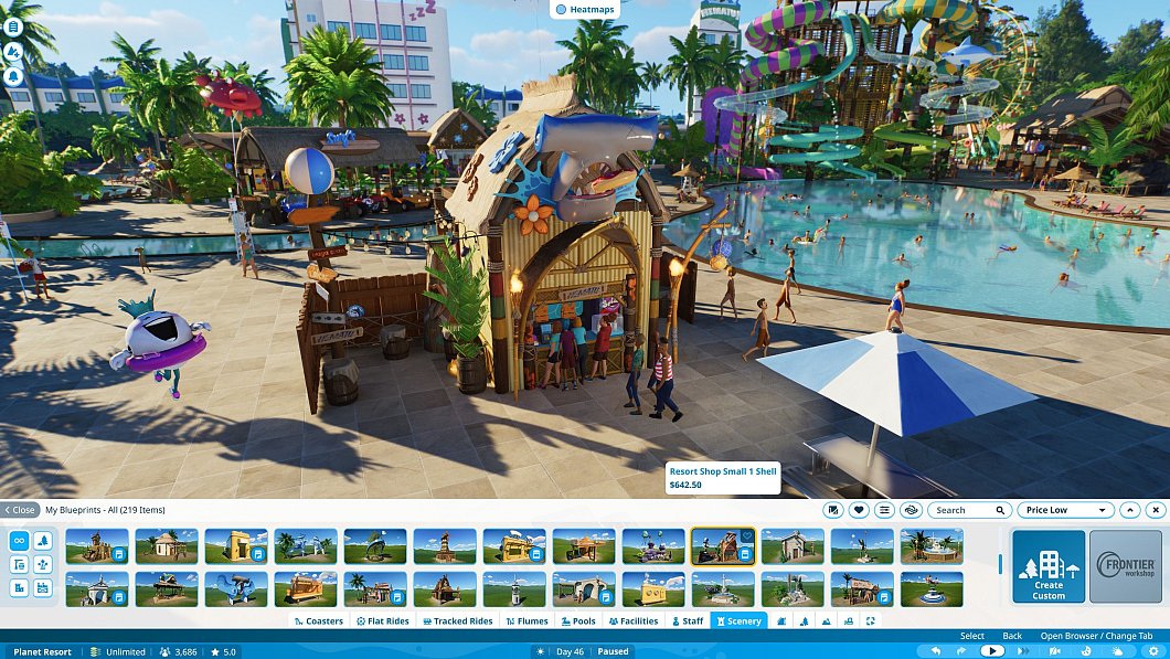 Die neuen Wasserparks und Rutschen fügen sich nahtlos in die Parkgestaltung ein und machen den Bau dieser Attraktionen intuitiv und unterhaltsam. Die verbesserte Wegführung erlaubt realistischere Platzgestaltungen, benötigt jedoch etwas Einarbeitungszeit, um das volle Potenzial auszuschöpfen. Anfangs haben wir uns dabei die Wege zugebaut und waren dann damit überfordert, das Problem mit der Menüführung zu lösen.