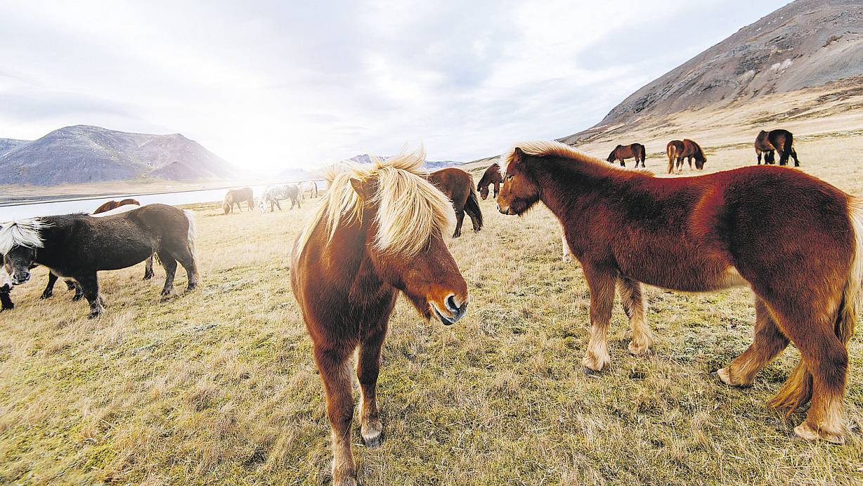 Beim größten Spektakel, dem Laufskálárétt am isländischen Trollgebirge, geht plötzlich alles ganz schnell. Die Pferde schießen in halsbrecherischem Tempo den Hang hinunter. Das Donnern der Hufe lässt die Luft vibrieren. Mähnen wehen, Nüstern blähen sich, feuchte Rücken dicht an dicht. Gerade noch haben die Reiter die Tiere durch einen Gebirgsfluss getrieben, jetzt hält die Herde direkt auf die Menschenmenge zu. Und für einen Moment ist die Welt nur noch Pferd.