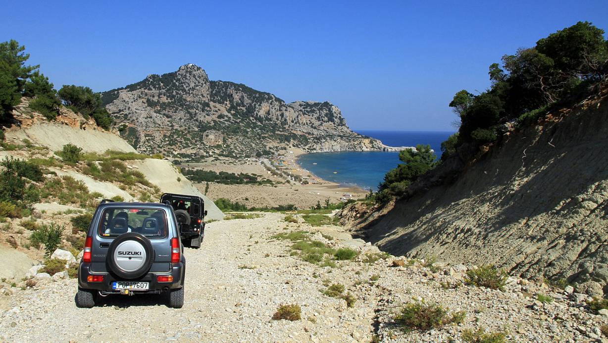 Wer auf der Fahrt von Rhodos-Stadt nach Lindos kleine Umwege in das Inselinnere nicht scheut, trifft auf pittoreske Dörfer, eine authentische Inselküche und äußerst gastfreundliche Bewohner. Wie vor 1.000 Jahren ziehen kleine Ziegengruppen durch die mit Sträuchern und wild wachsenden Kräutern übersäte Hügellandschaft, aus der Bergkuppen aus Muschelkalkstein herausragen. Bauern bieten unterwegs an kleinen Ständen Leckereien und Obst an. In Malona gedeihen beispielsweise saftige Orangen und Mandarinen, Granatäpfel und Limonen sowie aromatische Tomaten und Oliven. In Archipolis lohnt ein Stopp, um den berühmten Honig zu verkosten. Dazwischen laden kleine Kirchlein, wie die St. Marie Epikalusa zum Verweilen ein. Auch wenn es schwerfällt, sich einmal von den Stränden, wie Tsambika, die Anthony-Quinn-Bucht oder Faliraki, zu trennen, wird jeder auf Rhodos mit fantastischen Eindrücken belohnt, der sich entweder individuell oder mit einem der vielen Veranstalter auf Erkundungsfahrt begibt.