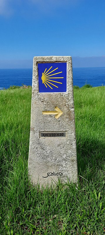 Wohin ich den Blick in Galicien auch richte: die Jakobsmuschel ist unübersehbar. An der Hauswand, auf dem Schild, am Bordstein, ins Fenstergitter eingearbeitet, in Stein graviert, weist sie den Weg und ist ein Blickfang. Ihre Geschichte reicht weit zurück: Vor vielen Jahrhunderten ergab es sich, dass Fischer ihre Jakobsmuscheln an die Domherren verkauften. Als Nachweis und mangels Urkunden in Papierform, wie es heute üblich ist, erhielten Pilger bei Ankunft in Santiago de Compostela besagte Muschel.