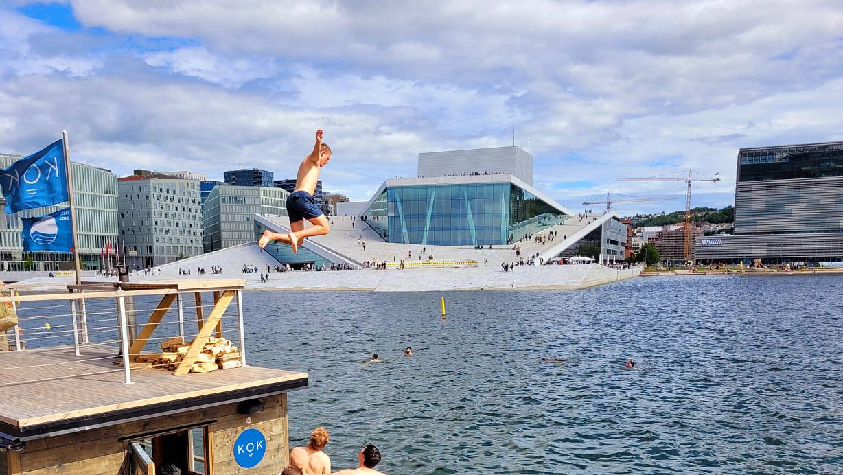 Freizeitmöglichkeiten wie Sand am Meer: Gegenüber dem Osloer Opernhaus laden schwimmende Saunahütten zum Schwitzen ein. Mit unschlagbarem Blick und anschließendem Sprung in den Fjord. | © Papageorgiou
