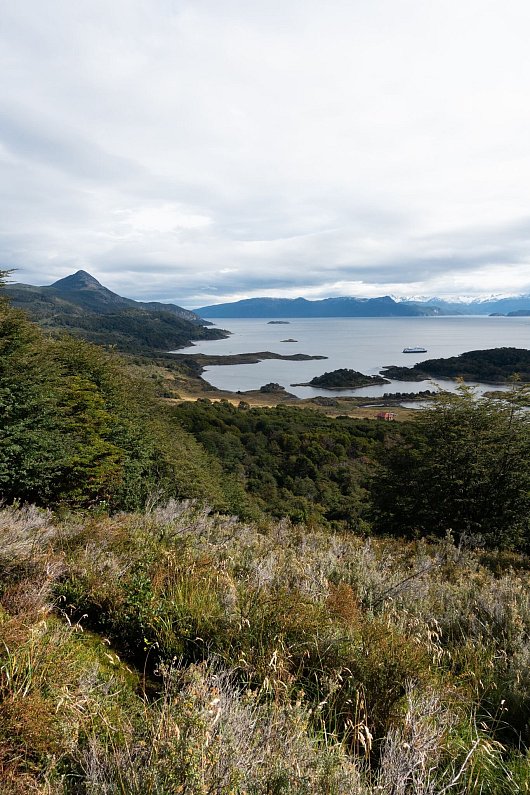 In einem Haus hinter der Bucht ehrt ein Museum das Volk der Yamana. Dahinter zieht sich ein Weg über einen rauschenden Fluss hinauf zum Aussichtspunkt. Flechten gleichen Greisenbärten. Die Blätter der Südbuchen schimmern hellgrün.