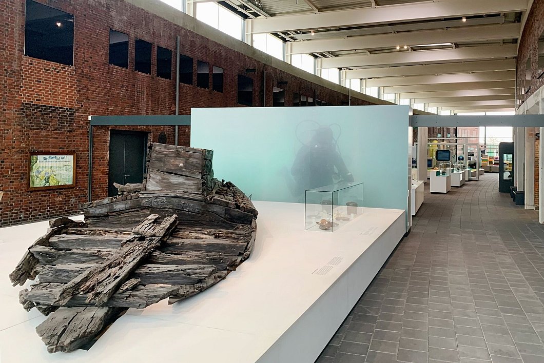 Jenny Sarrazin, bis 2021 Leiterin des Museums, erzählt heute als ehrenamtliche Mitarbeiterin bei Führungen von spektakulären Schiffsuntergängen. Zum Beispiel dem der «Wilhelmine». Die hölzernen Reste des 15 Meter langen Schiffes sind so ziemlich das Erste, was man in der großen Mittelhalle des Museums sieht.