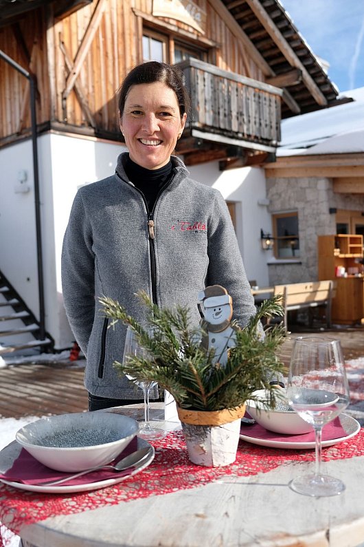 «Anfangs war ich skeptisch», sagt Michaela Irsara. «Denn eine Gourmetküche hat ja viele Köche und wenig Gäste. Bei uns ist es umgekehrt.» Irsara, 50, ist die Wirtin der Ütia (Hütte auf Ladinisch) «I Tablá». Die Hütte liegt auf 2.040 Metern Höhe inmitten weiter, sanft geneigter Pisten. Von der Terrasse blickt man auf den breitschultrigen Sellastock mit seinen Bastionen und Türmen.