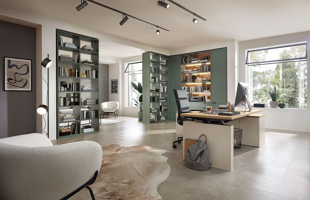Arbeitet jemand viel im Homeoffice? Dann können flexible Regale etwa mit integriertem Arbeitsplatz eine gute Lösung sein. Als offene Raumteiler-Varianten bieten sich Scharrenbroch zufolge Schieberegale an, bei denen mehrere Regalebenen auf derselben Höhe geplant werden können. Wer eine klare Linie mag, wählt im Wohnbereich ein Regal mit versteckter TV-Lösung.