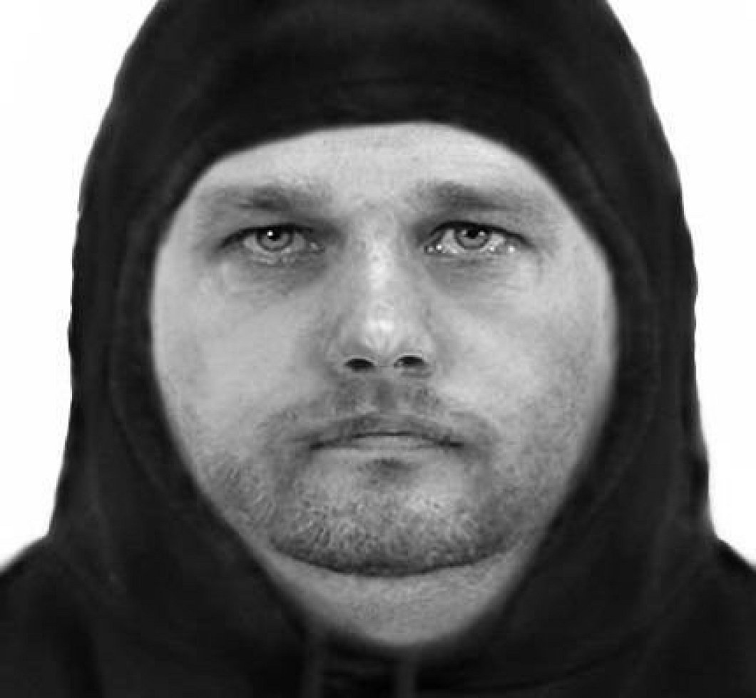 Die Mann wird wie folgt beschrieben: etwa 35 bis 40 Jahre alt, etwa 1,70 bis 1,80 Meter groß und kräftig, rundes, kräftiges Gesicht mit Dreitagebart. Er trug eine dunkelblaue oder schwarze Sweatshirt-Jacke mit Kapuze (vermutlich mit Reißverschluss), eventuell Jeans und Handschuhe aus Stoff.