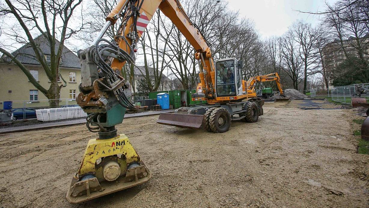 Heute Baustellen-Lagerplatz: Teile der Grünanlage an der Ravensberger Straße hat der Umweltbetrieb für Baufahrzeuge und -container herrichten