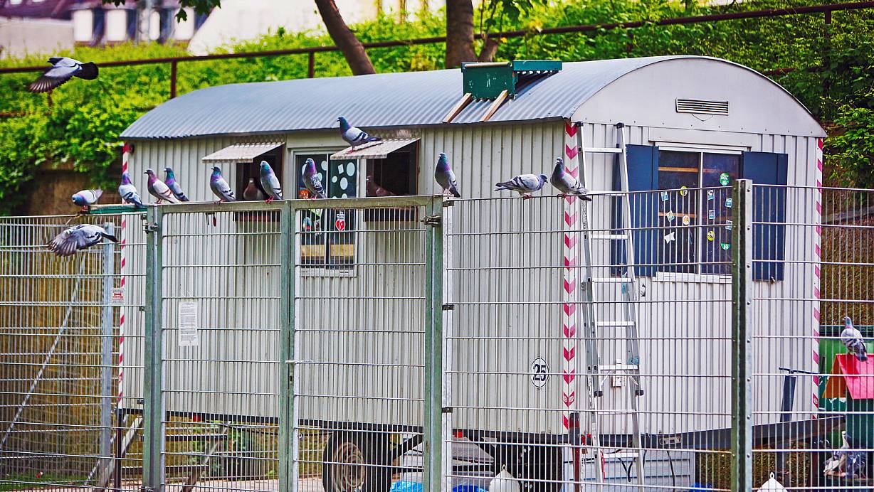 Geburtenkontrolle: Die Stadt hat einen Bauwagen spendiert, der zum neuen Heim für die Bielefelder Tauben werden soll. Ziel ist es, dass die Tauben hier brüten, damit man ihnen die Eier gleich wieder klauen und durch Plastik ersetzen kann. | © Sarah Jonek