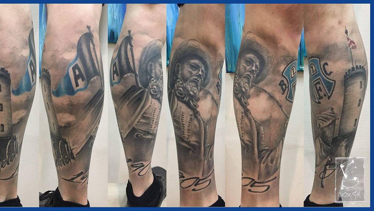 Stefan Oltmann hat sich verschiedene Motive auf das "Bielefeld-Bein" tätowieren lassen. | © Stefan Oltmann