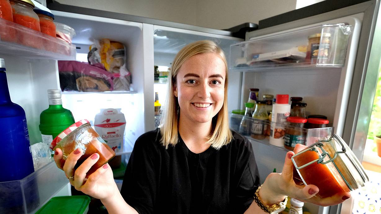 Gemeinsam mit Mops Merlin und ihrem Freund Andre wohnt Rebecca Krautmacher im Bielefelder Osten. Auch wenn ihr Freund häufiger mal zu Lebensmitteln in Plastikverpackung greife, sei das für sie kein Problem. Gerade weil viele andere Dinge bereits zur Gewohnheit geworden seien, sagt Rebecca Krautmacher. Küchenpapier sei zum Beispiel komplett von ihrem gemeinsamen Einkaufszettel verschwunden. Stattdessen bewahren die beiden selbstgenähtes Küchenpapier in einem leeren Joghurtglas in der Küche auf.