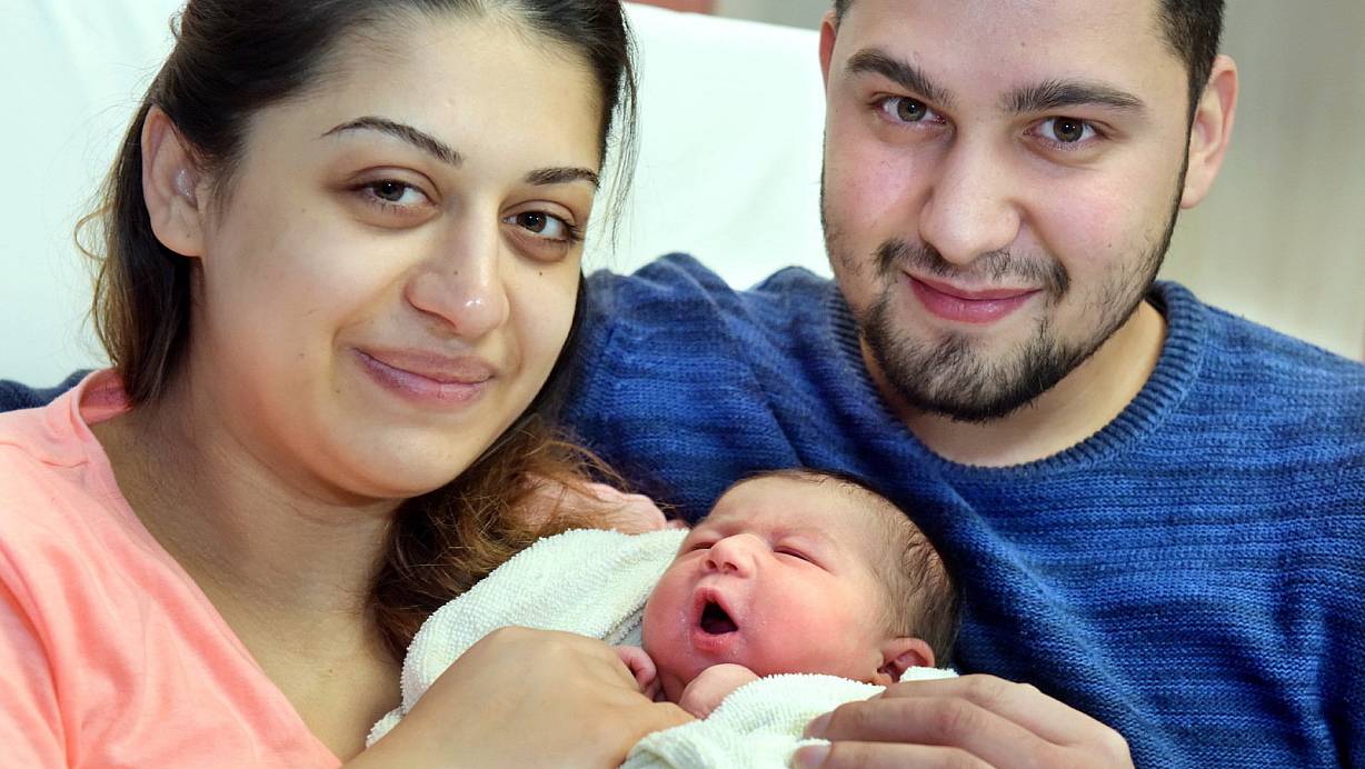 Bielefeld. Mit ihrer Hand umklammert das kleine Mädchen mit dem langen Namen fest den Finger von Mutter Renata (23). Stolz blick Vater Denis (24) auf seine Tochter. Um 1.07 Uhr hat Fekrija Fazlijevic als erstes Baby des Jahres 2018 in Bielefeld im Franziskus-Hospital das Licht der Welt erblickt. Den stolzen Namen hat sie von ihrer Großmutter erhalten.