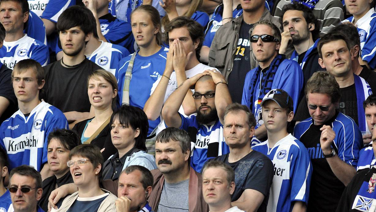Zwischen Frust und Jubel: Die Fans von Arminia Bielefeld müssen sich seit Jahrzehnten mit Abstiegen und Finanzkrisen herumschlagen. Auf diese folgen wirtschaftliche Rettungen und Aufstiege. Manche finden das spannend, andere nervtötend. | © Christian Weische