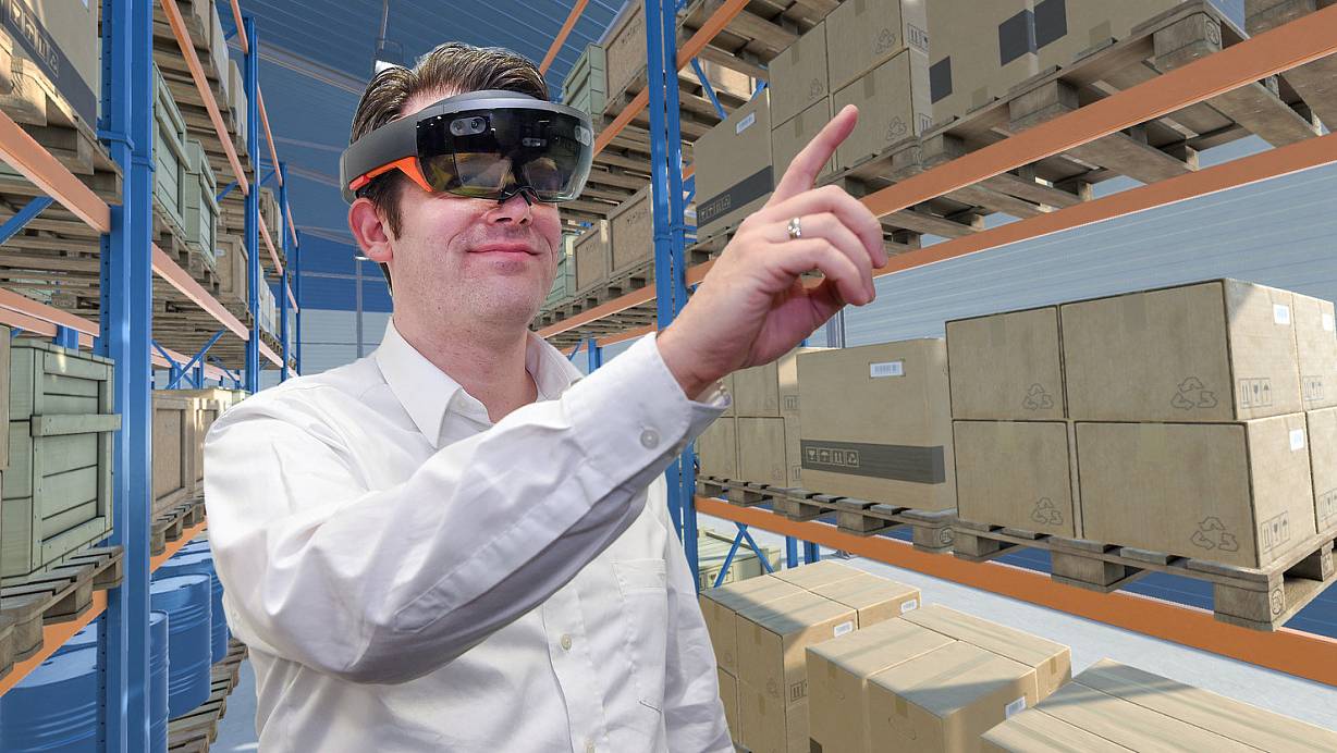 Wie im Computerspiel: Die High-Tech-Brille ermöglicht Thies Pfeiffer den Gang durchs Hochregallager. | © Christian Weische/Citec