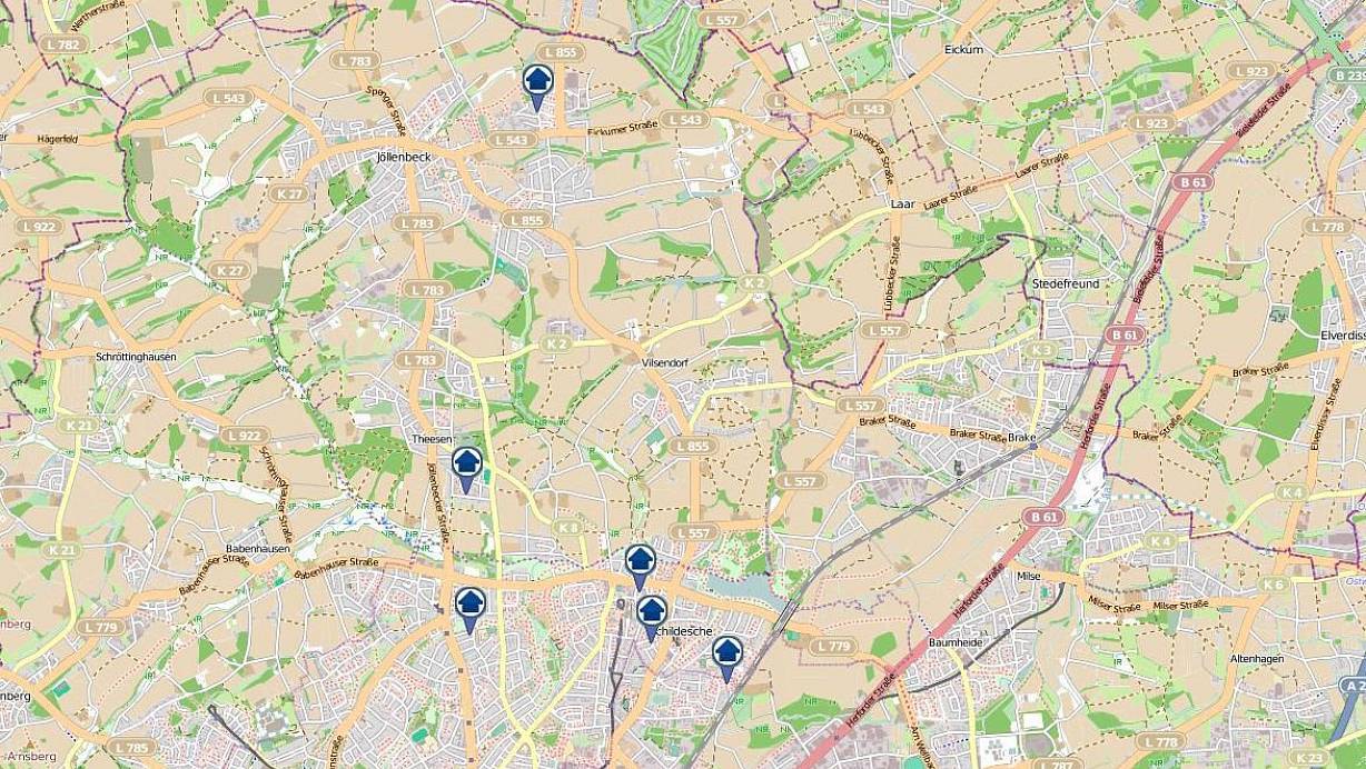 Hier schlugen die Einbrecher zu: Ungewöhnlicherweise ist der Stadtteil Mitte kaum belastet, dafür registrierte die Polizei gleich fünf Tatorte in Schildesche. | © Polizei Bielefeld