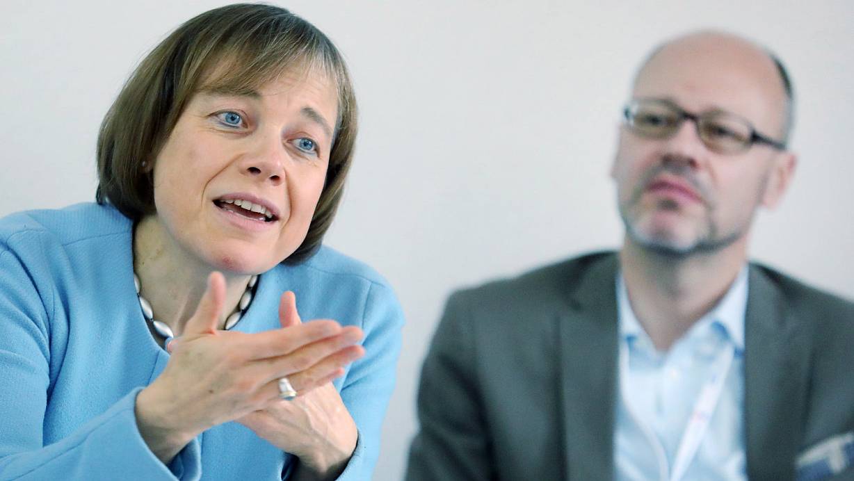 Präsentierten die Ergebnisse der Tagungen: Präses Annette Kurschus (links) und Finanzdezernent Arne Kupke. | © Sarah Jonek