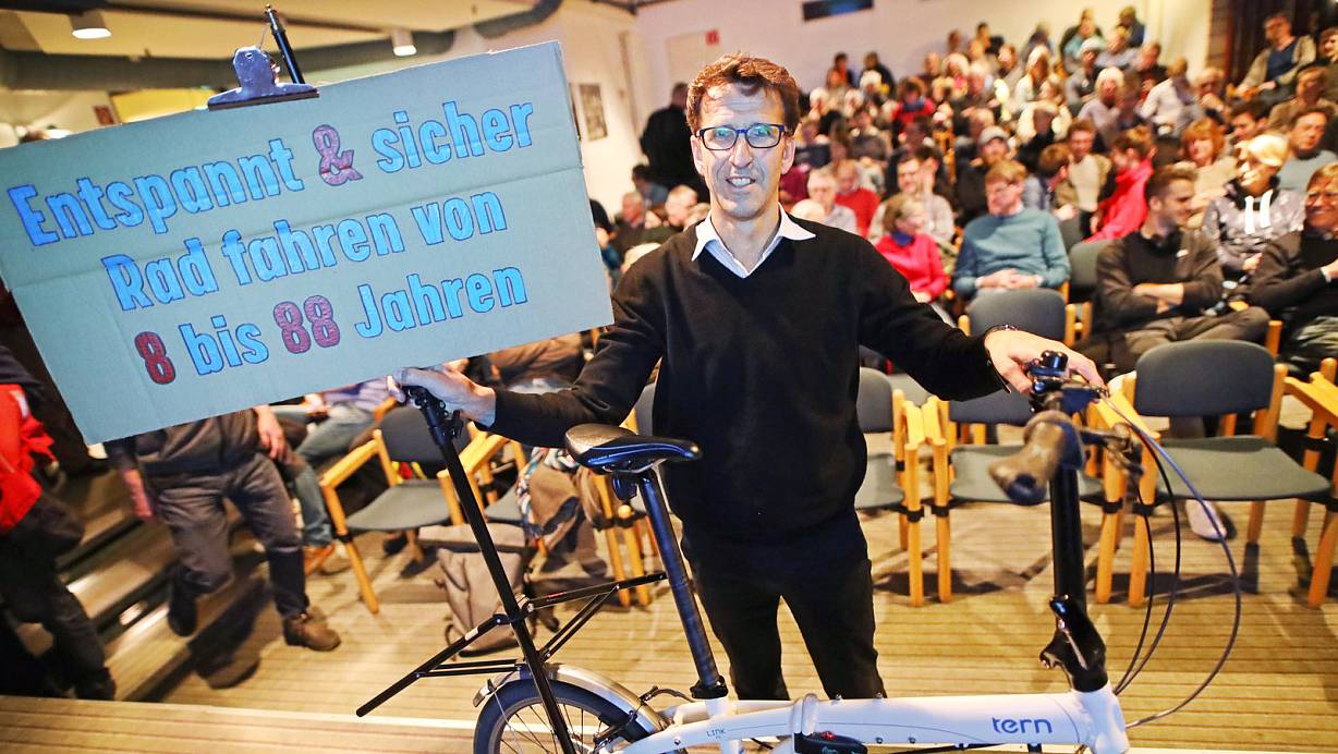Verkehrswende: Heinrich Strößenreuther sprach in der VHS vor knapp 200 Besuchern darüber, was Bielefeld von Berlin lernen kann. Ideen hat er. Und auch hier sollen bald Unterschriften gesammelt werden - für entspanntes und sicheres Radfahren