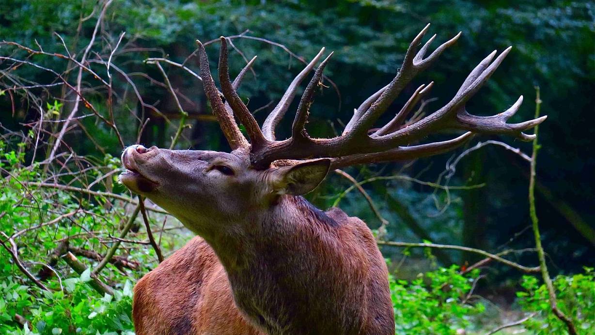 Rothirsch Hansi flämt und röhrt im Tierpark Olderdissen - sein stattliches Geweih ist jetzt zu haben. | © Kurt Ehmke