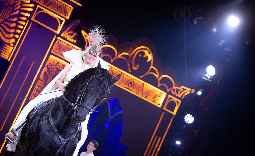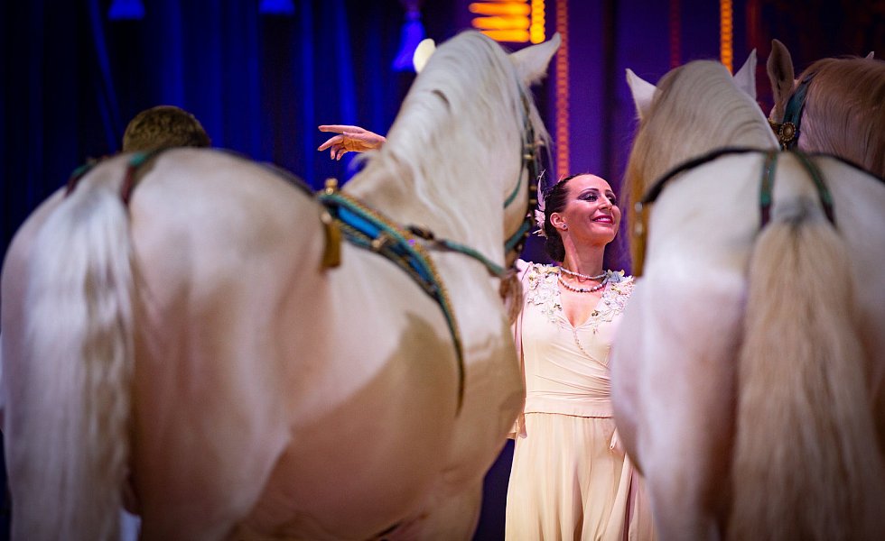 Bielefeld. Die Pferdeprinzessin Mandana liebt den Löwen-Prinzen – das ist die große, romantische Geschichte, um die es im neuen Programm des „Circus Krone" geht. Und sie ist vielleicht gar nicht so weit weg von der wahren Geschichten der beiden Nachfahren bekannter Zirkusfamilien, die am Ende zueinander gefunden haben.