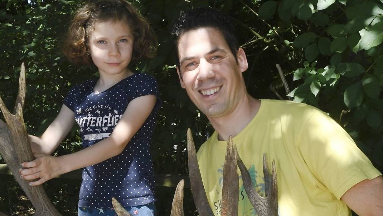 Frisch ersteigert: Thomas Fräßdorf und Julina Fräßdorf (6) sind glückliche Besitzer eines echten Rothirsch-Geweihs. | © BGW