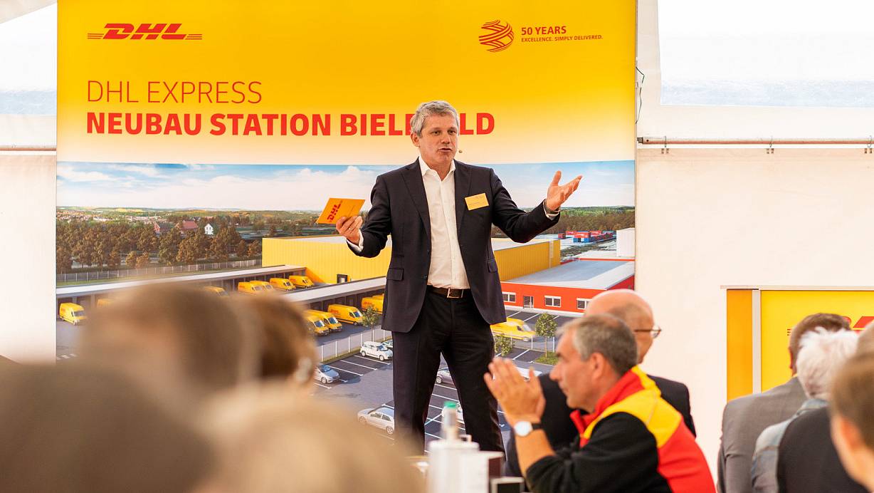 Gibt den Startschuss: Markus Reckling, Chef von DHL Express Deutschland, steht vor Plänen für ein neues Verteilzentrum in Bielefeld. | © Dennis Angenendt
