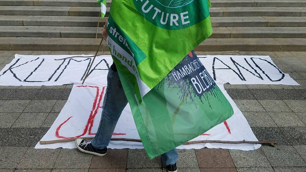 Draußen wehten die Fahnen und drinnen legten sich die Demonstranten nieder.