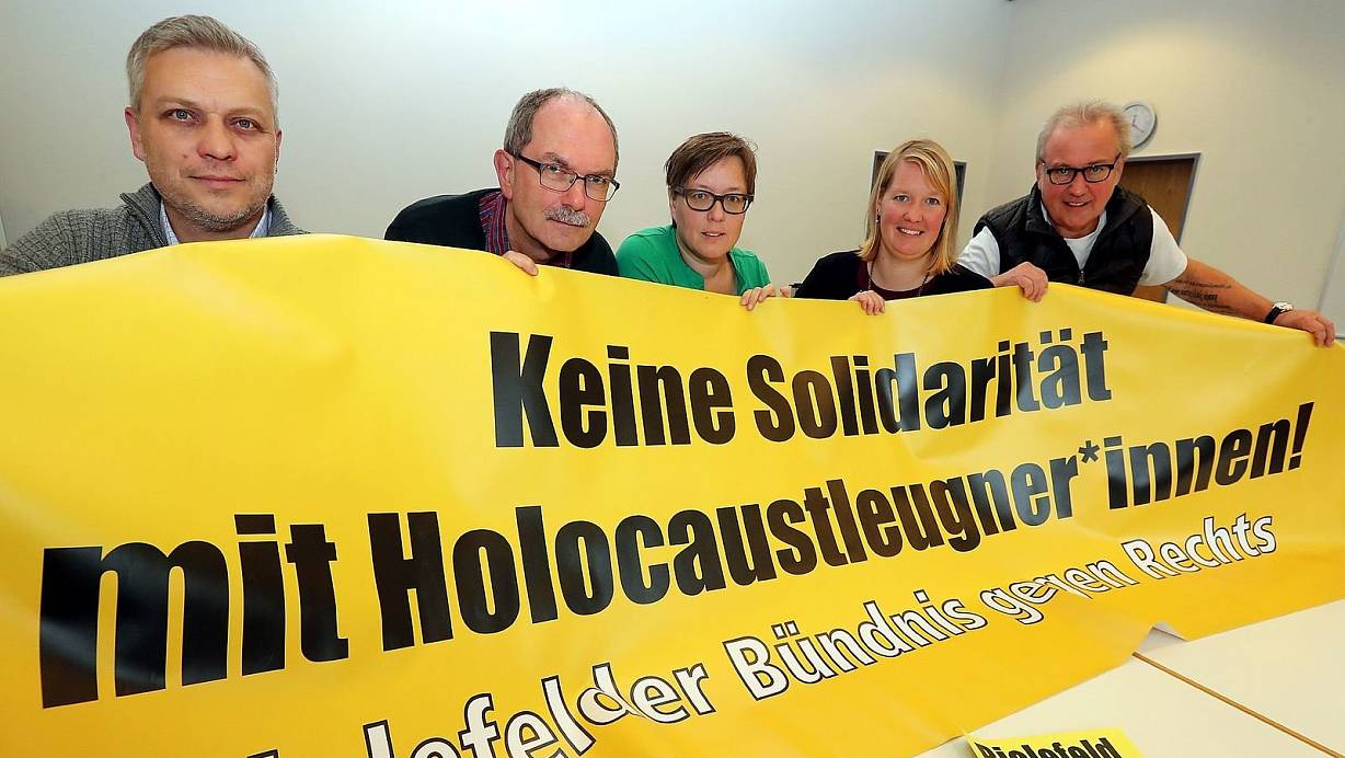 Das Bündnis gegen Rechts betont, dass Faschisten am 9. November nicht hinnehmbar sind. Unterzeichner der Mitteilung sind (v.l.) Michael Gugat, Klaus Rees, Friederike Vogt, Wiebke Esdar und Matthias Blomeier. | © Wolfgang Rudolf