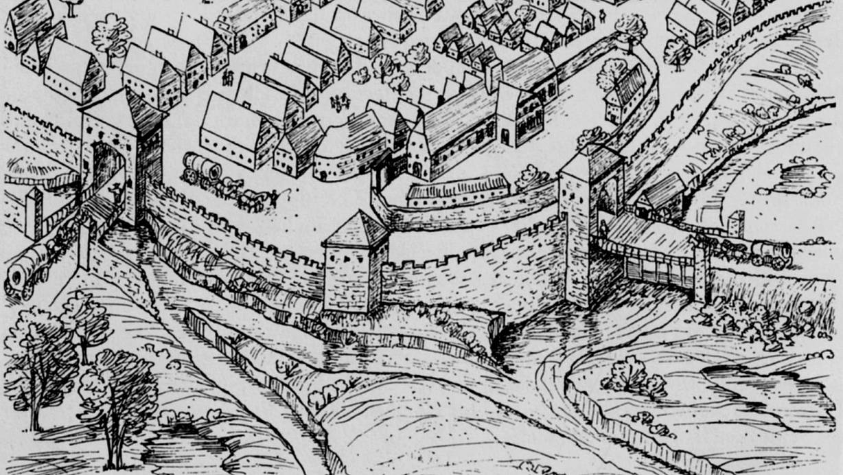 Bielefeld, wie es im 13. Jahrhundert ausgesehen haben soll. | © Buch: Geschichte der Stadt Bielefeld, R. Vogelsang. Verlag Wolfgang Winkel.